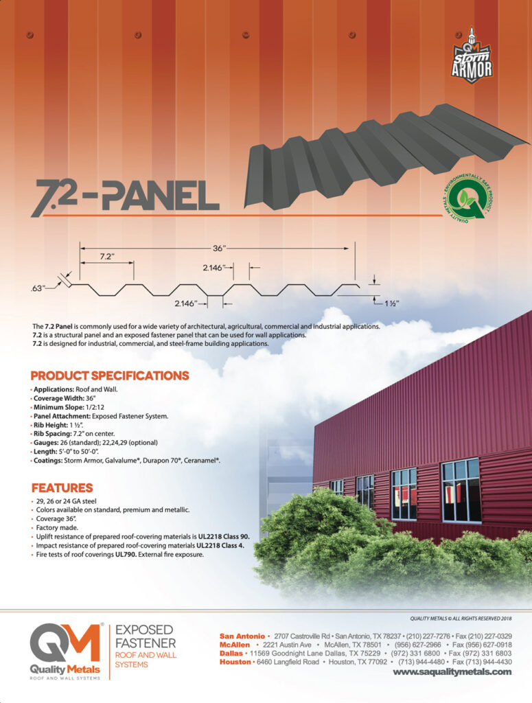 7.2 is a structural panel and an exposed fastener panel that can be used for wall applications.