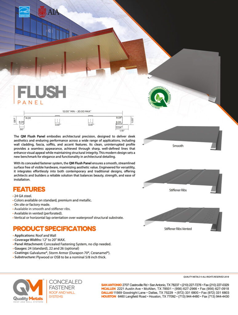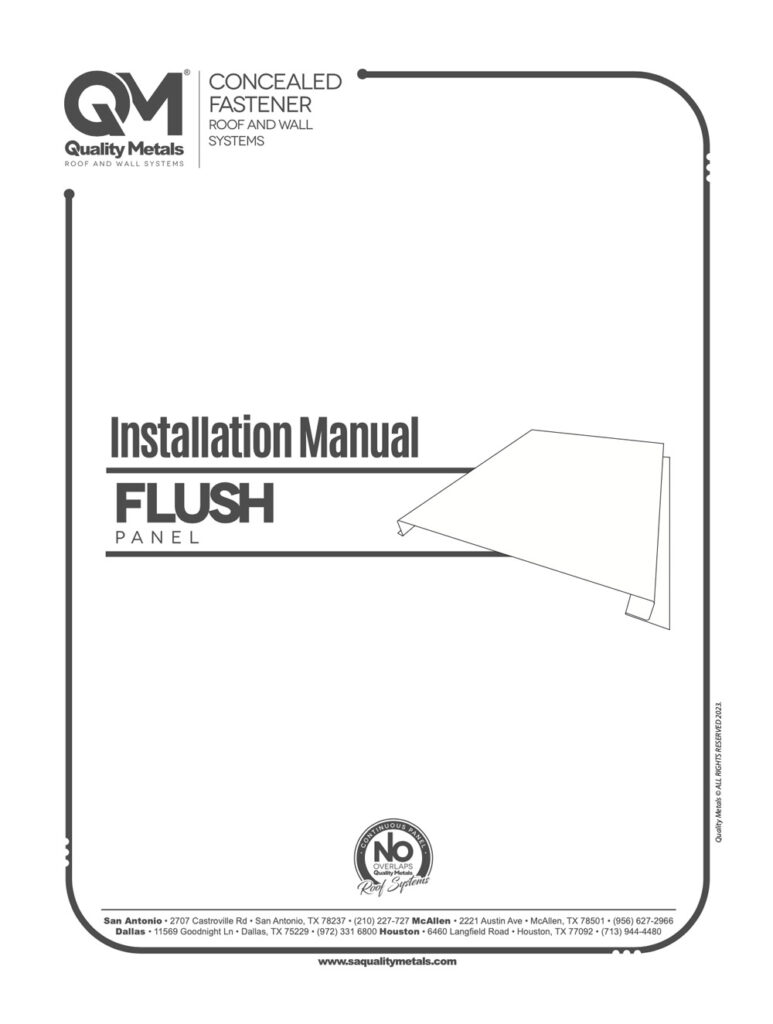 This manual provides recommendations and guidelines for the installation of the Quality Metals Flush Panel system and related trim details. The information contained herein reflects the standards in effect at the time of its original publication. Quality Metals reserves the right to update or modify specifications and designs without notice, in order to meet evolving code requirements. For the most current information, please visit our website or contact us directly.